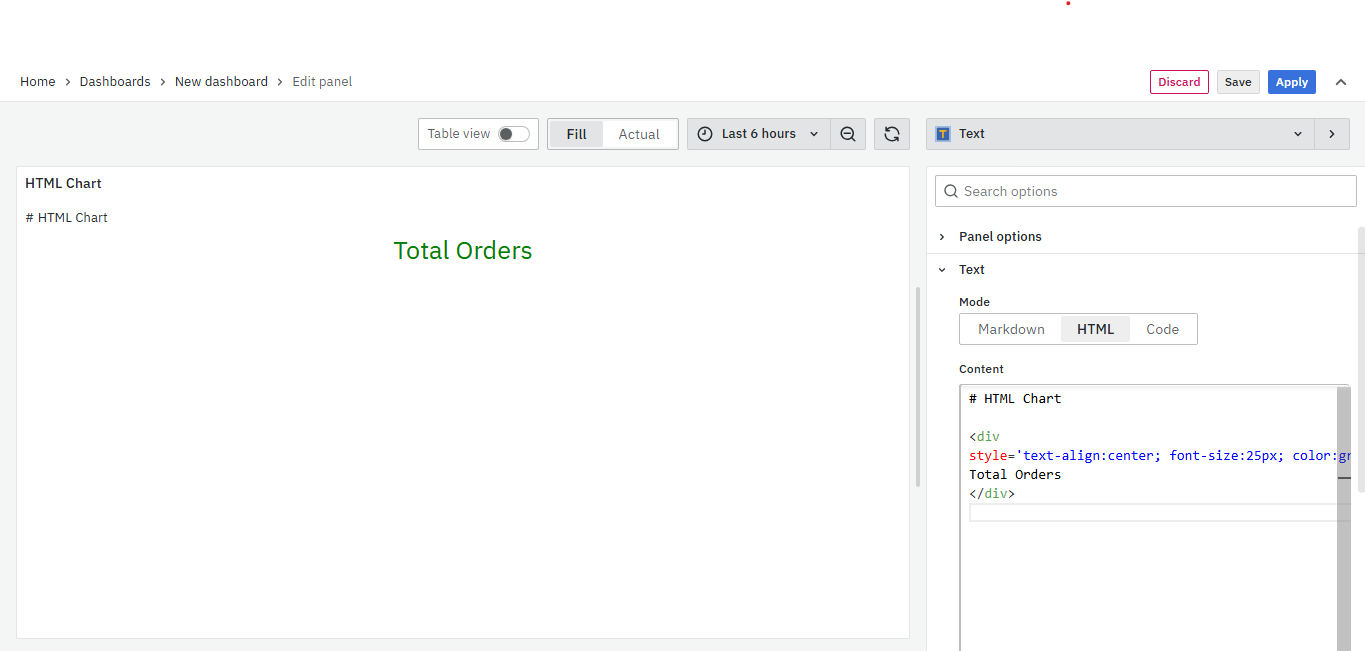 You have now learned how to configure the HTML Visualizations, change the panel settings, and more. You can save and edit the panel later too.