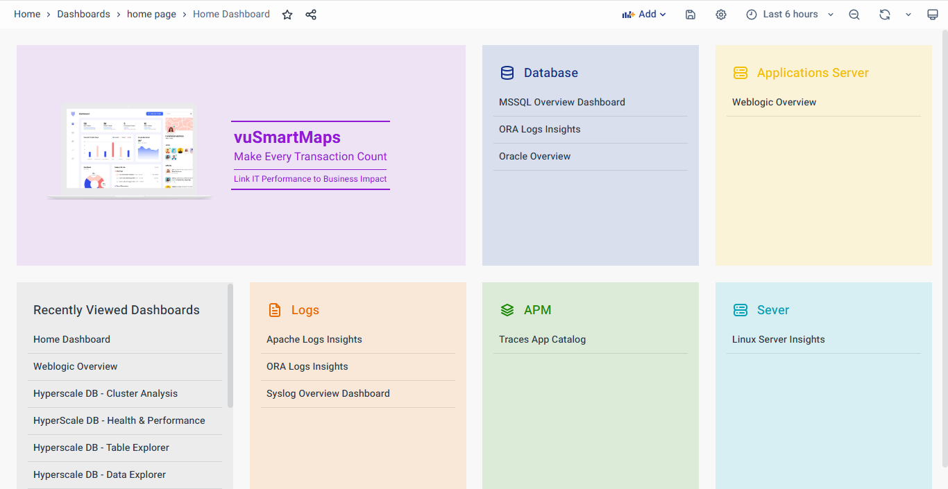Category-Based Dashboard Navigation: This feature allows dashboards to be categorized logically based on their types, enhancing usability and navigation.
