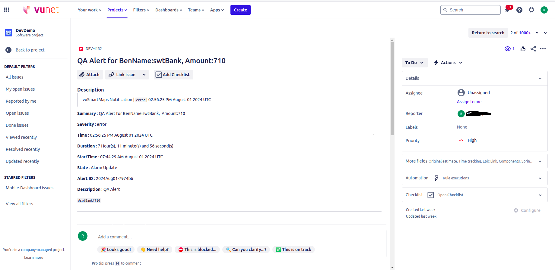 Additionally, you can click on the Add Filters section and choose one or more criteria from the dropdown such as ‘Route Name’ or ‘Severity’ etc.
