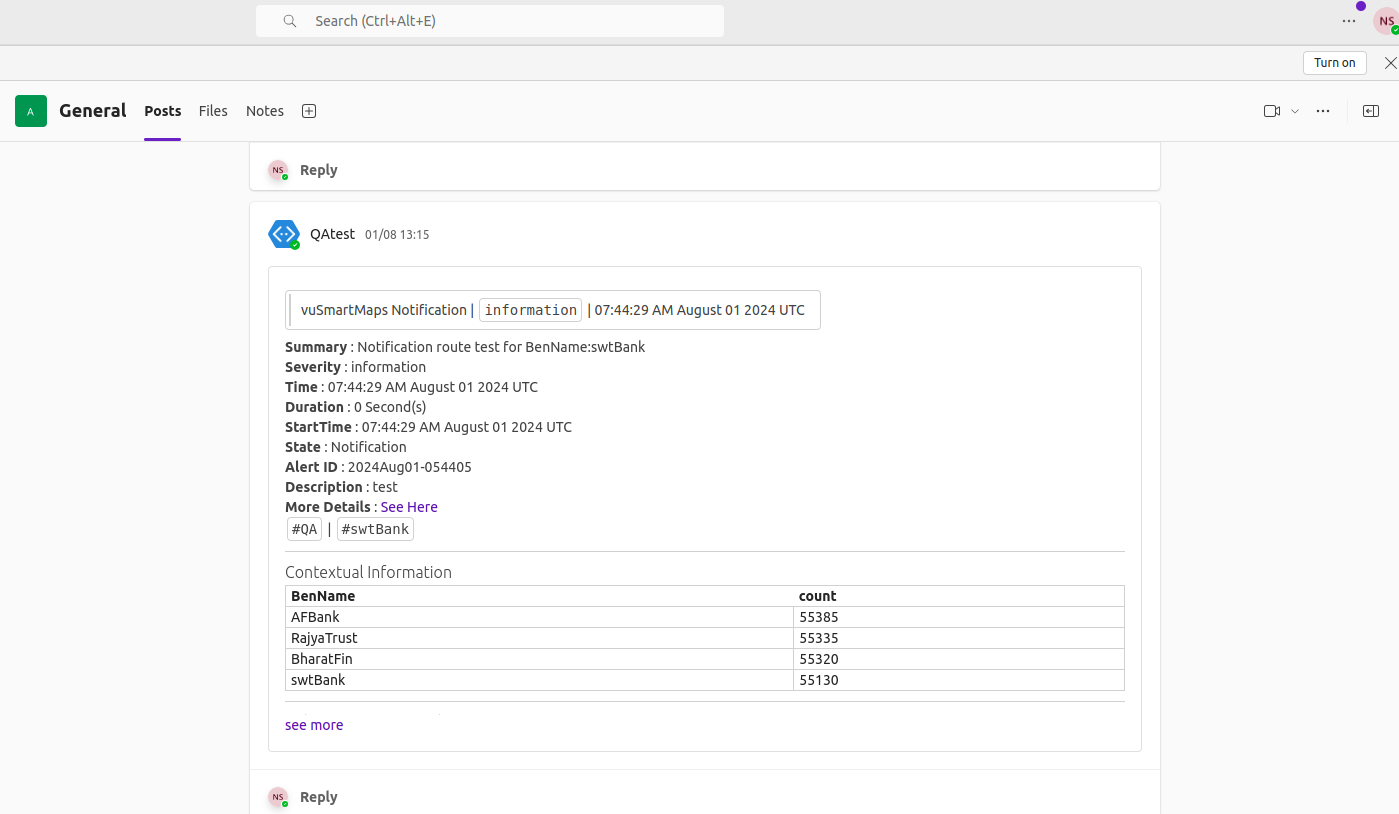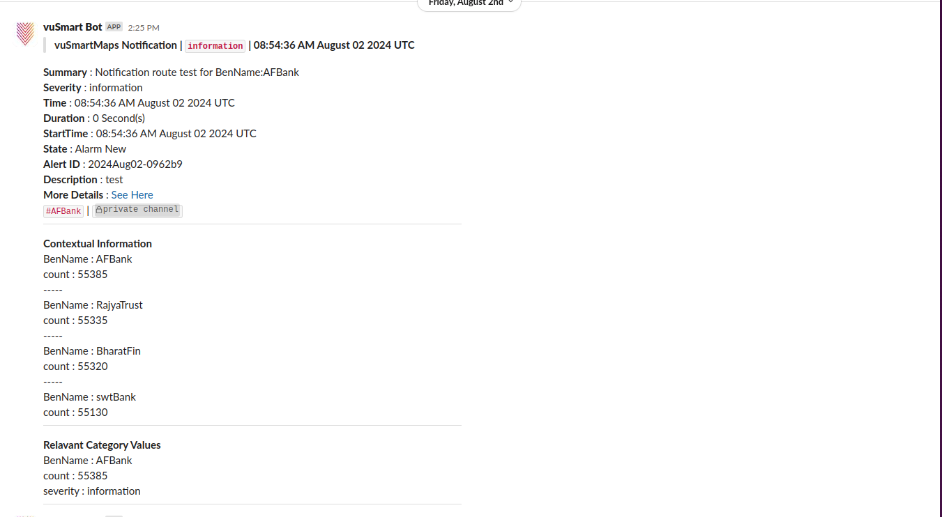 This simulates a test alert based on your configuration to verify if notifications are delivered as expected. It's ideal for validating setup before enabling routes in production.