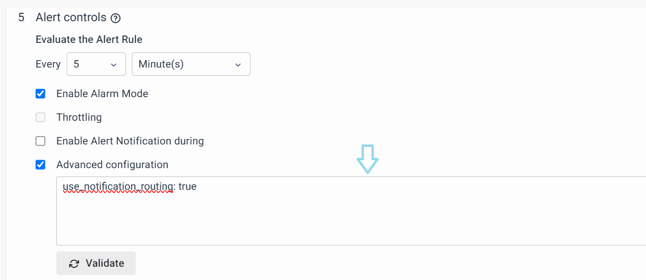 For a Notification Route to take effect, make sure to include the condition use_notification_routing: true in the Advanced Configuration section of the Alert Controls while configuring the Alert Rules.
