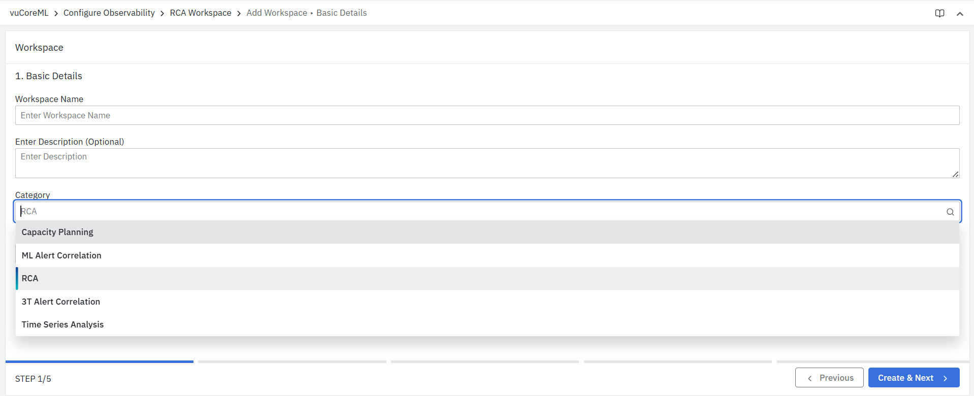 Enter the Workspace Name, Description, and choose the Category as RCA, and choose the Run Type as Online or Offline based on the requirement.