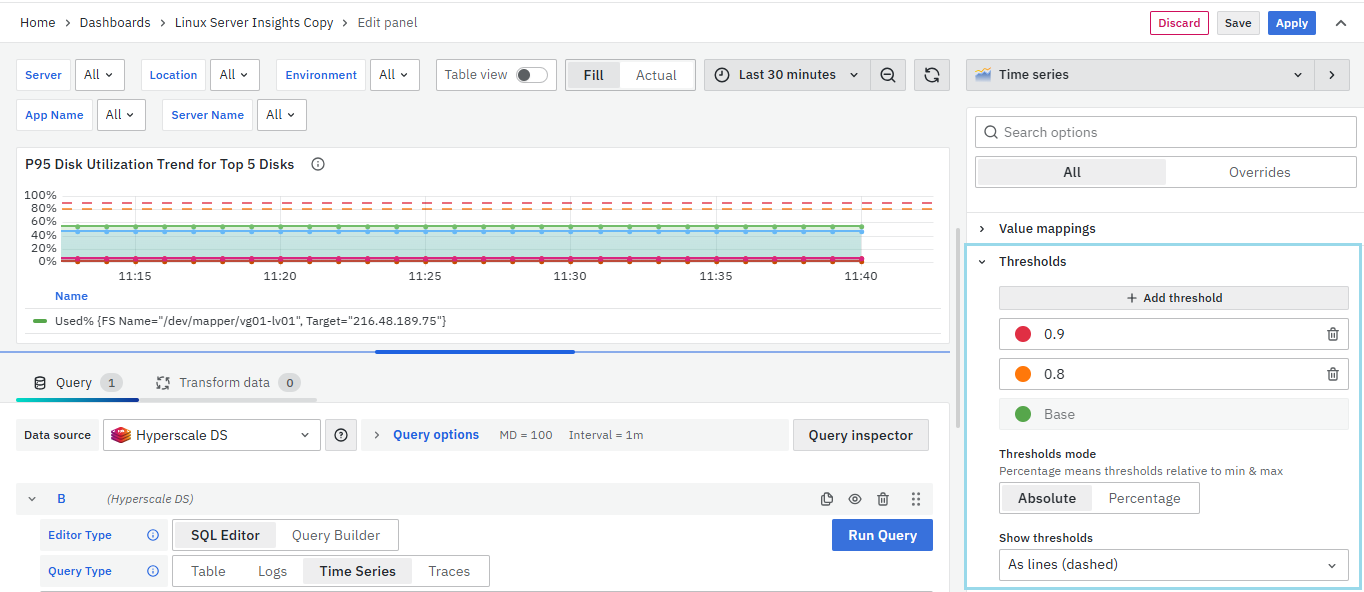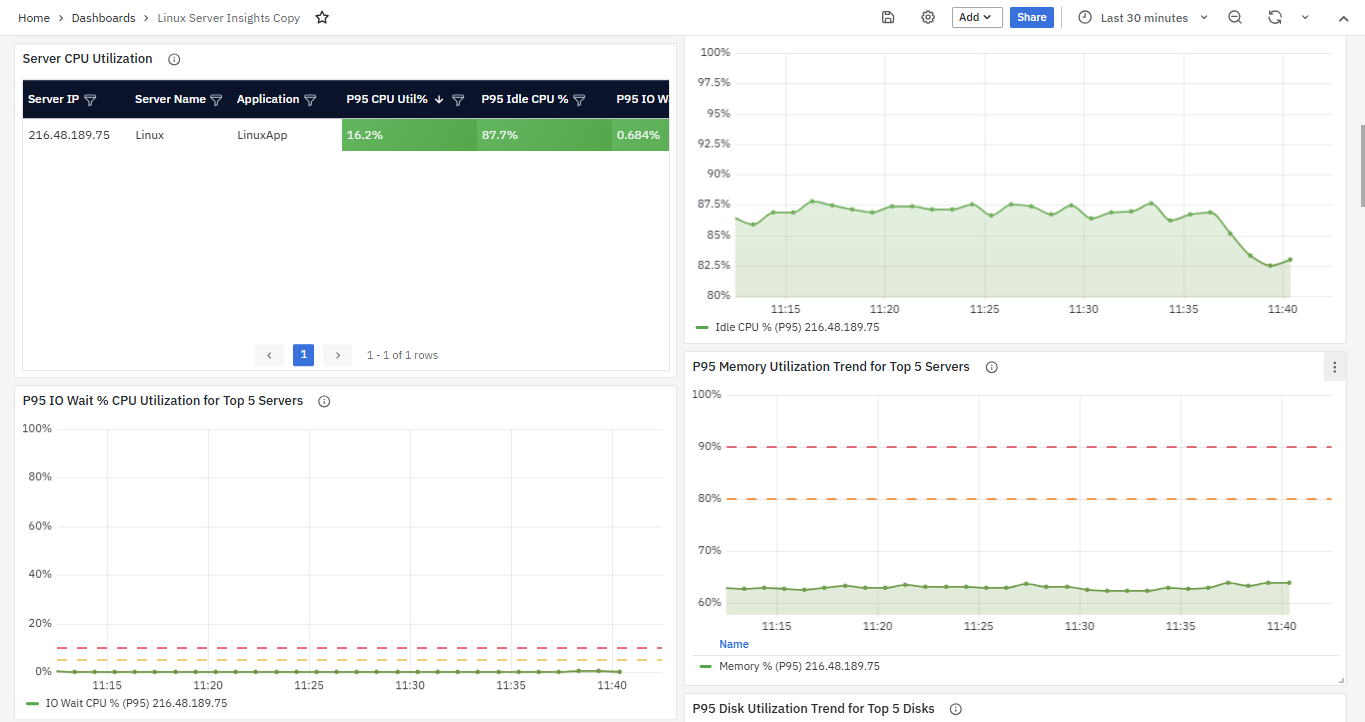 You can select various panel types within the same dashboard and arrange them side by side to assess the impact of server health from different components and vice versa. This allows for a comprehensive understanding of the overall server health status.