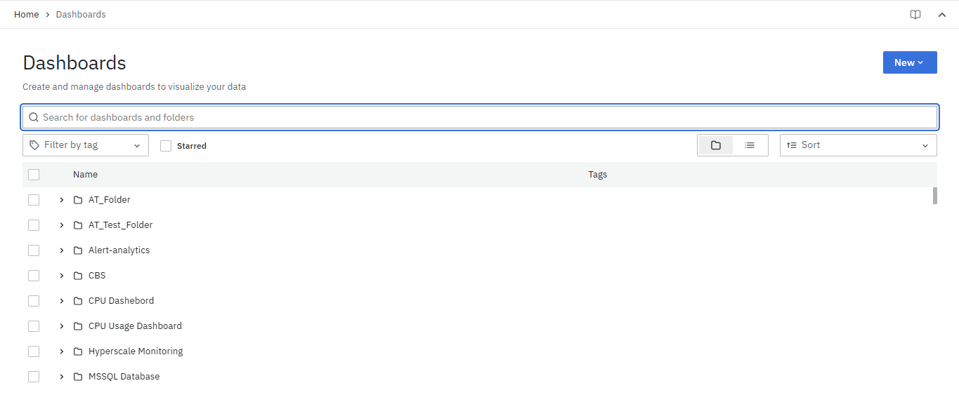 - Creating, editing, and organizing dashboards within folders.