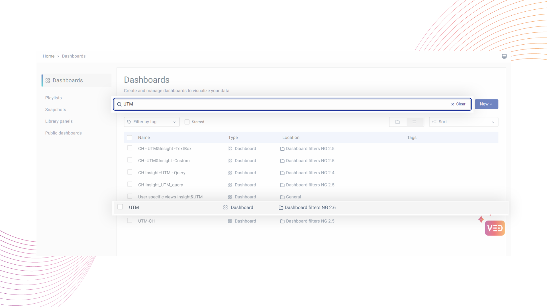 Open the Dashboard you want to export—for example, the UTM dashboard.