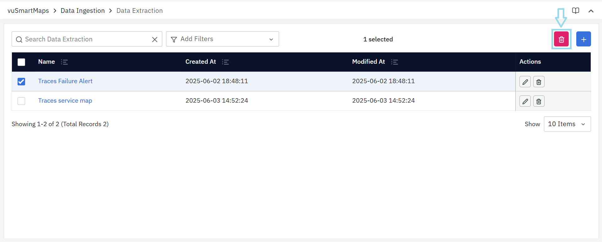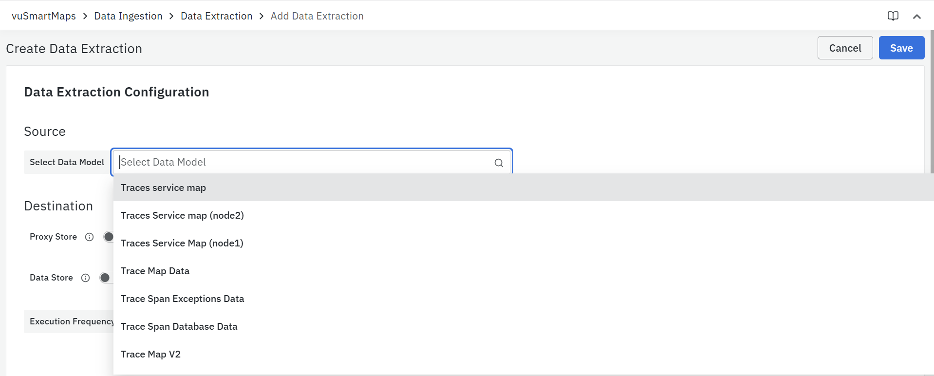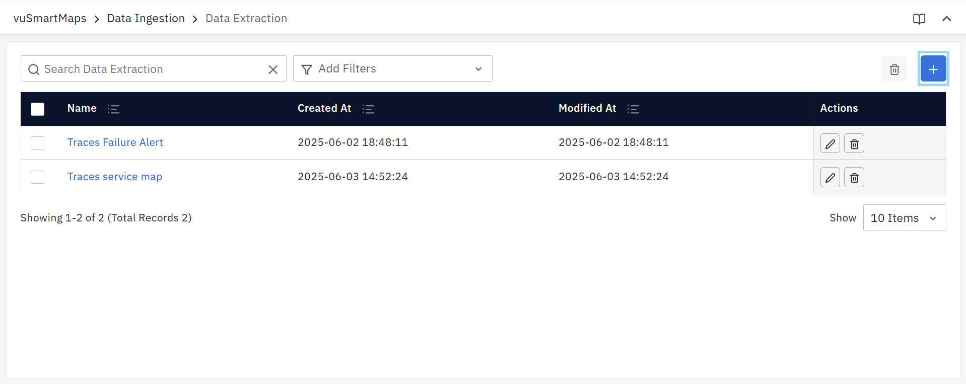 vuSmartMaps Data Extraction can be accessed by navigating from the left navigation menu (Data Ingestion > Data Extraction).