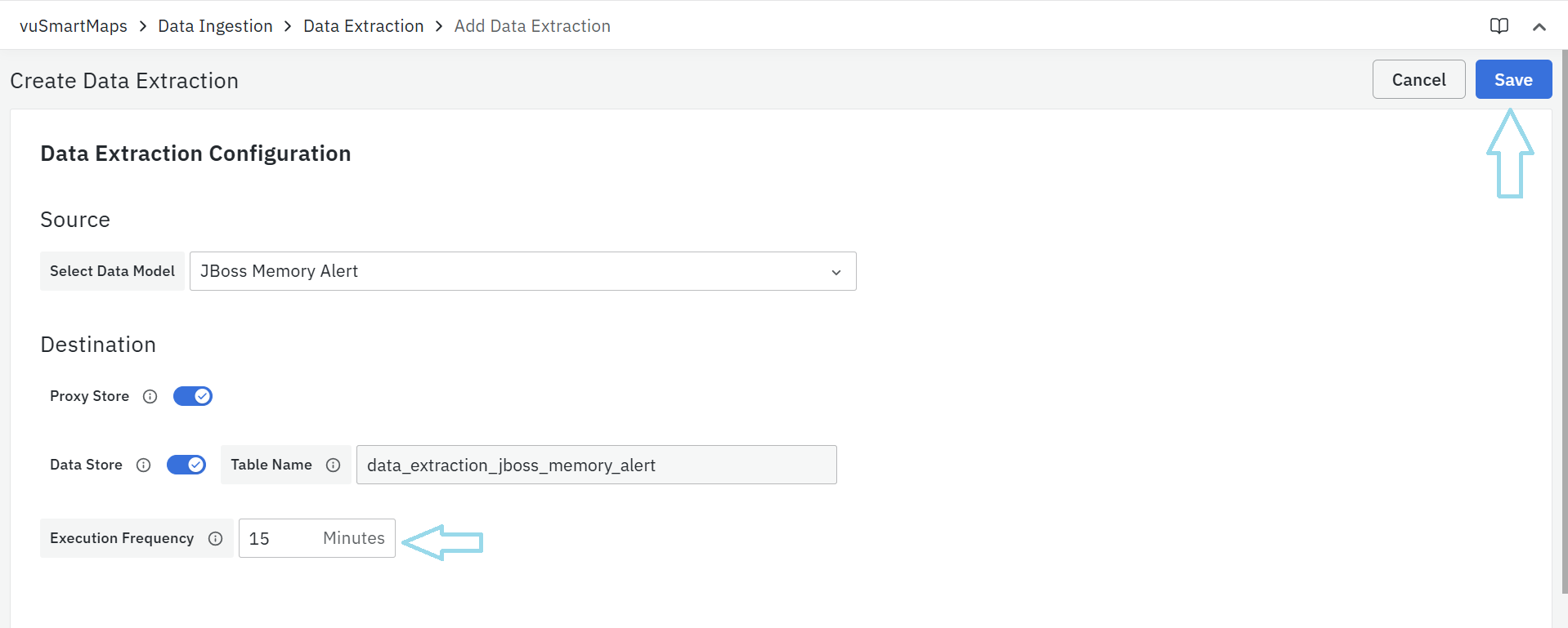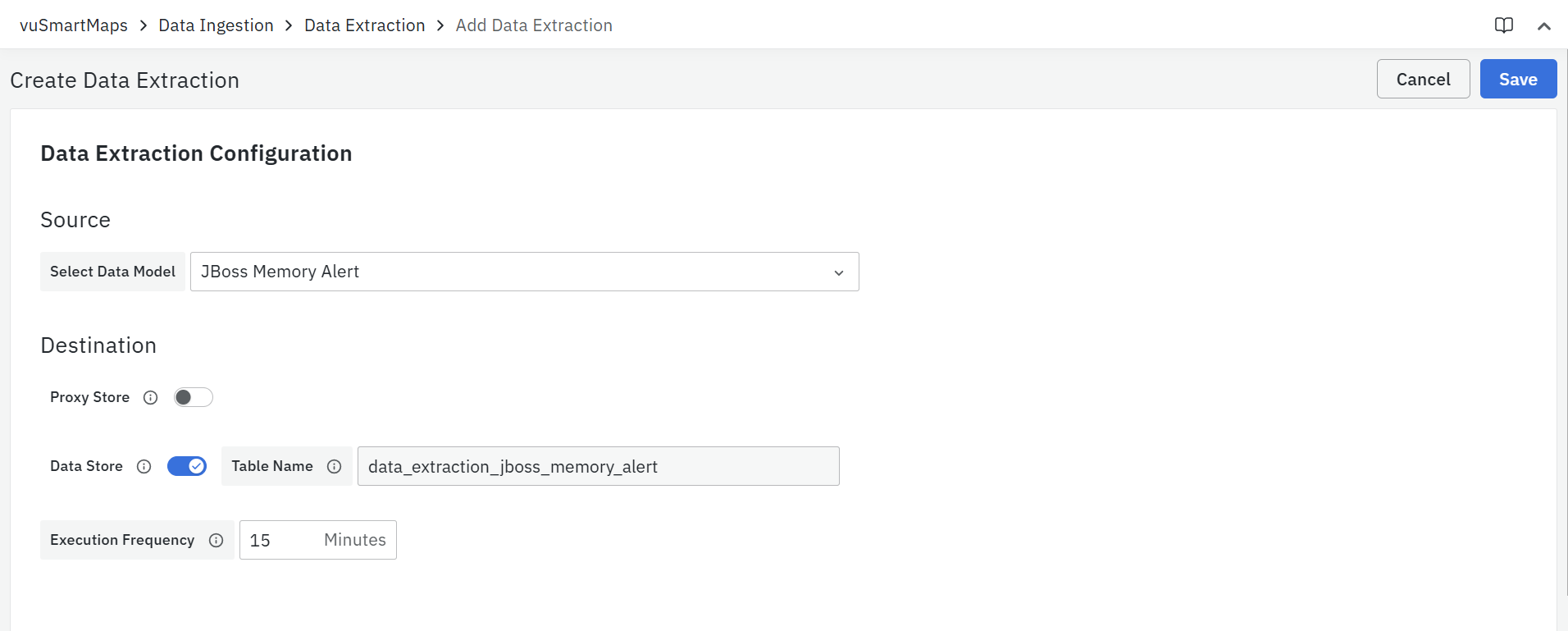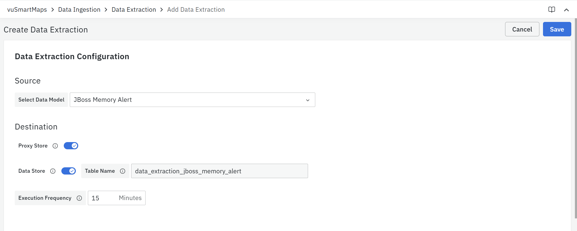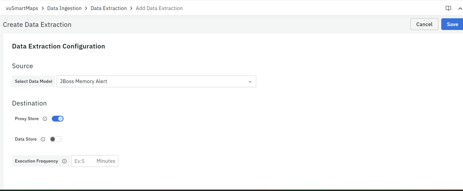 Execution Frequency: It is the interval in which the data extraction job has to run for the given source.