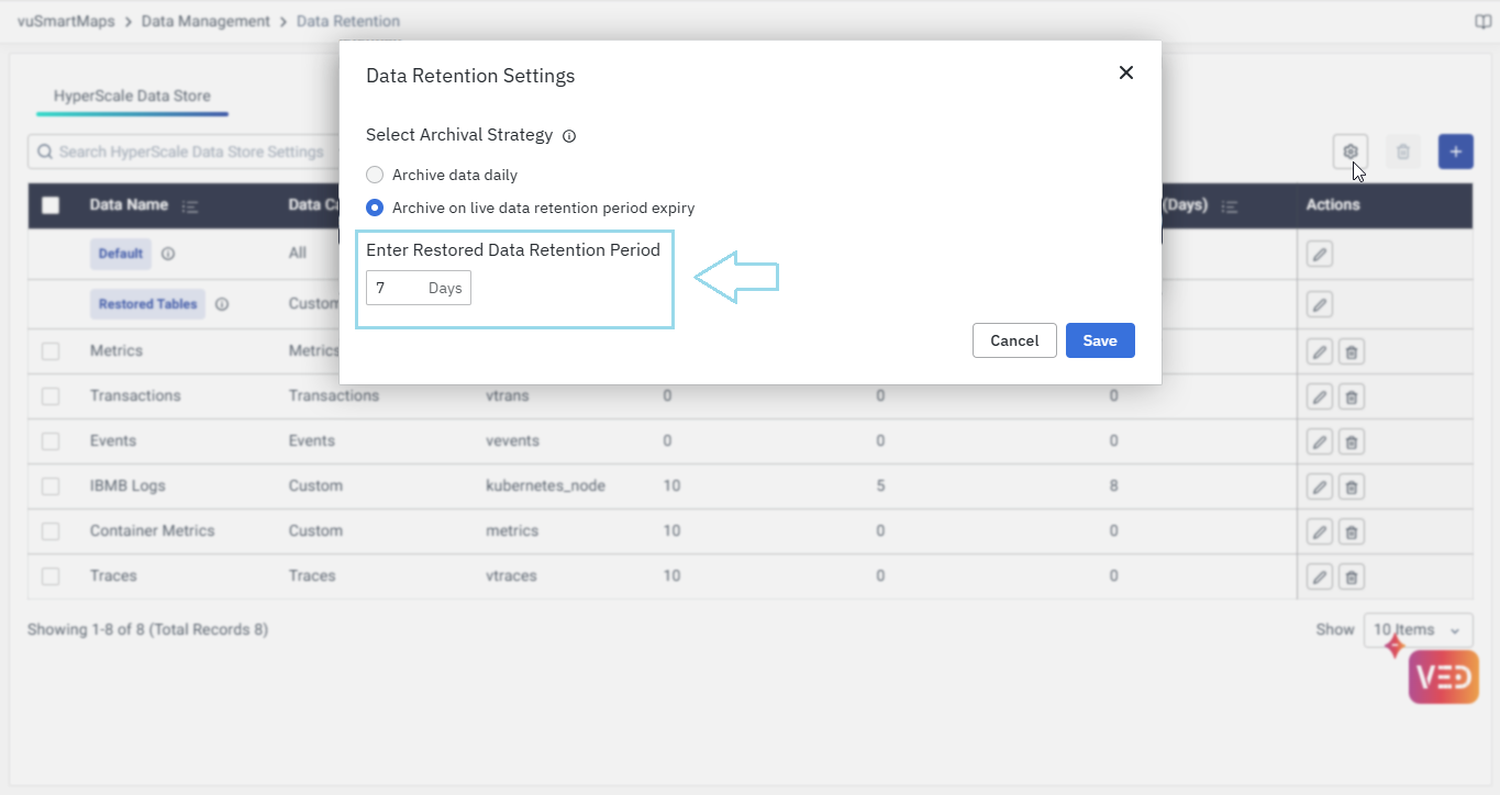 The HyperScale Data Store offers a tiered approach, dividing data into Hot, Warm, and Archived storage states, each serving distinct purposes in data management and access. From restoring archived data to archiving and retrieving data, vuSmartMaps empowers users with intuitive tools and functionalities for streamlined data management, facilitating enhanced decision-making and productivity.