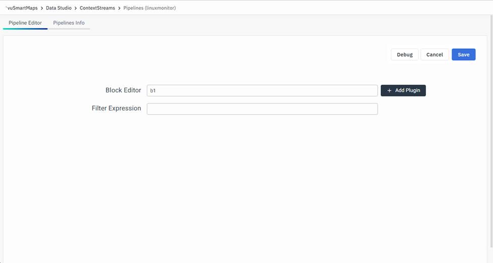 Each block within the Block Editor can incorporate one or multiple plugins. You have the flexibility to add as many blocks as necessary, either to accommodate multiple processing paths or to group specific processing steps within a single block. This allows for a highly customizable and versatile approach to designing your data pipeline.