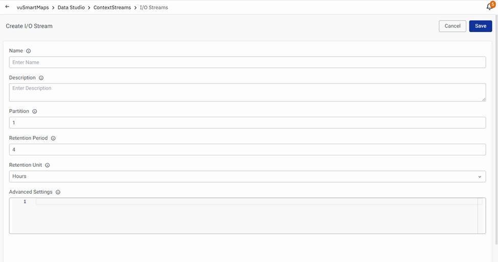 - Retention Period- The time for which the I/O stream should hold the data available. Choose based on the requirements, considering factors like analysis frequency, compliance, and storage capacity.