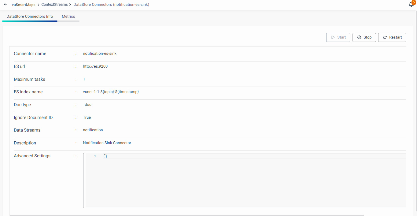 Here, the Datastore Connector details are visible, and you can also configure the advanced settings options from here.