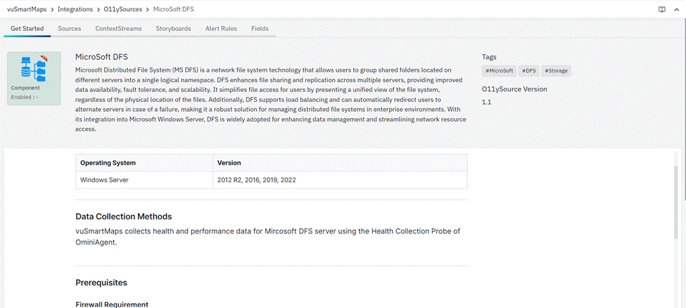 The Get Started tab provides all the essential information required to understand and prepare an O11ySource before configuration. It helps users assess compatibility, understand how data is collected, review alerting capabilities, and verify that all prerequisites are met for successful data onboarding.