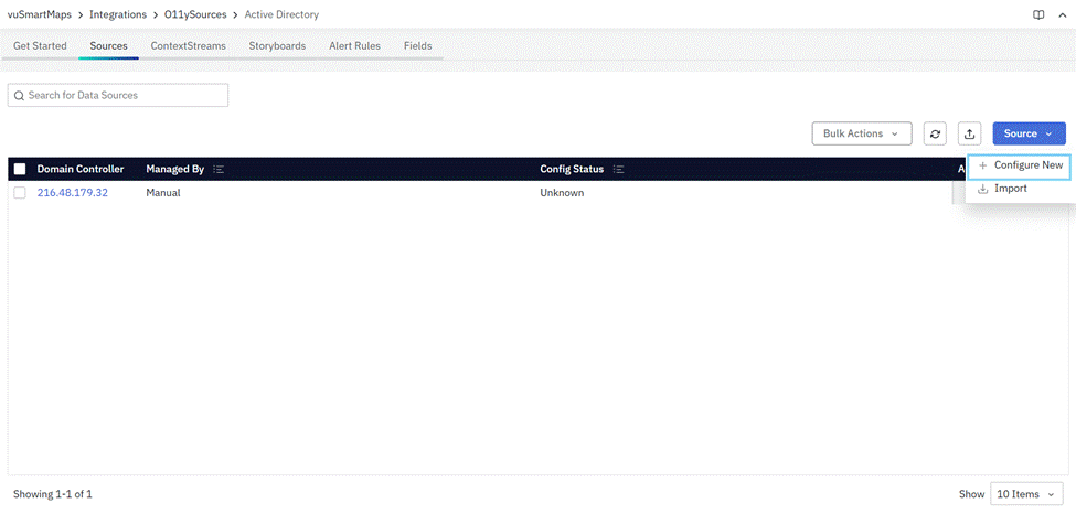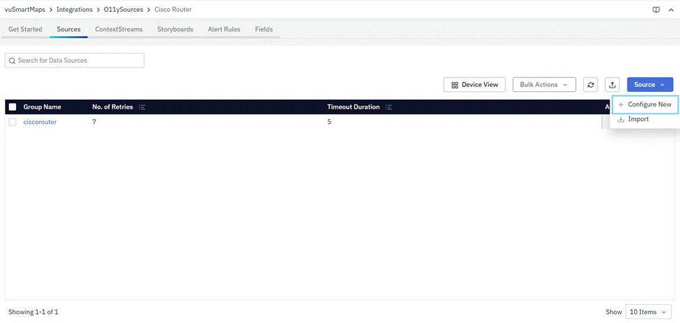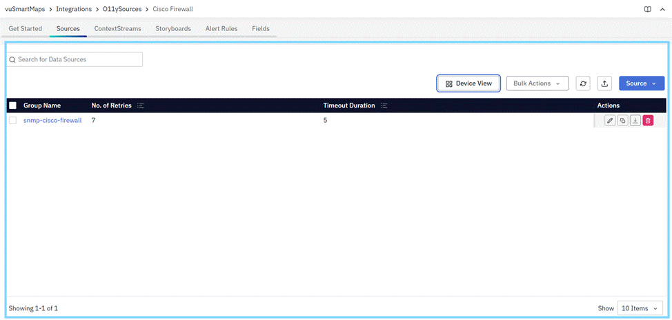 - Group Name: Displays the name of the logical group under which Source Instances are organized. Selecting the group allows access to detailed configuration and Source Instance views.