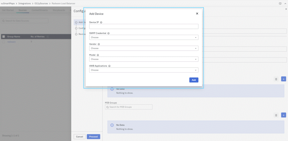 - Within Add Source Instance, click Add Device to open the Add Device dialog.
