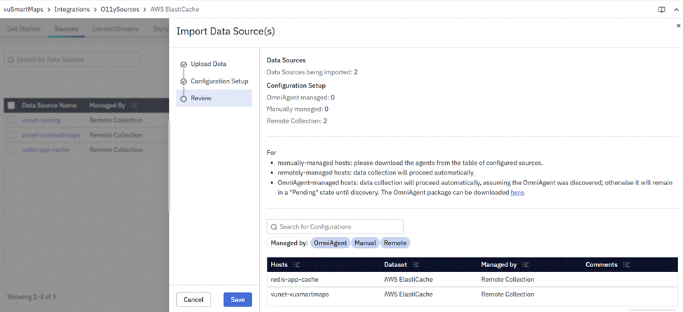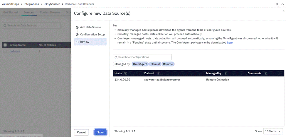 - Managed By: Indicates how data is collected for the Source Instance, such as OmniAgent-based collection, Remote Collection, or Manual Setup.