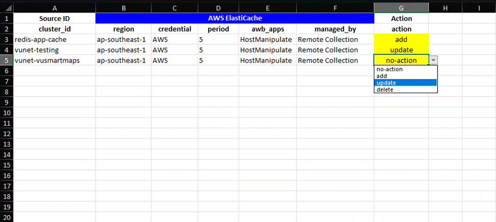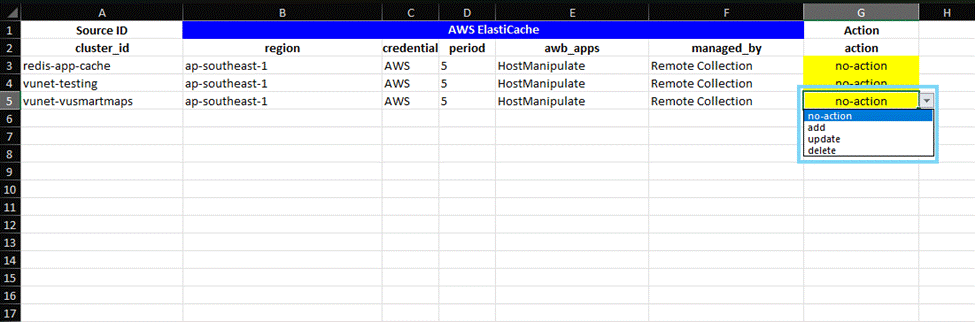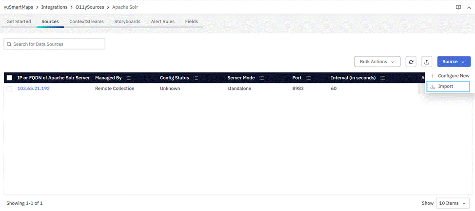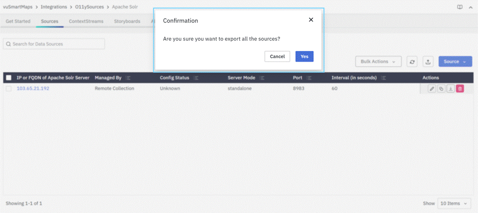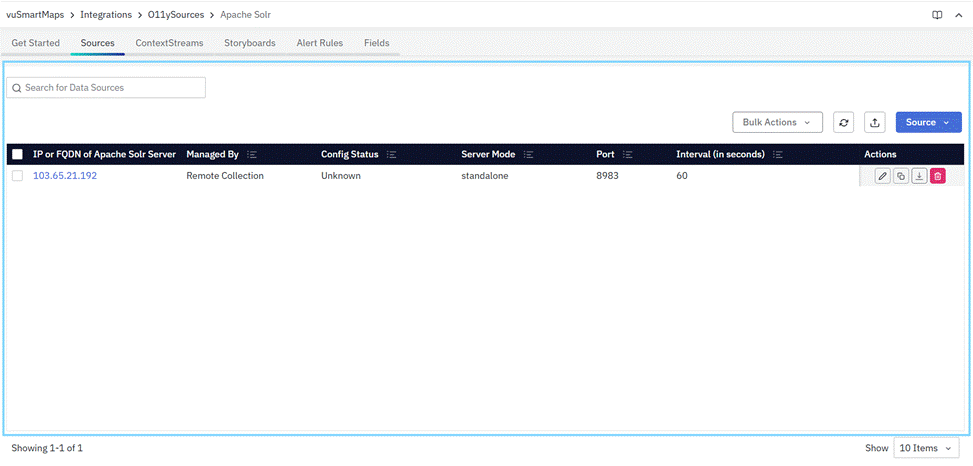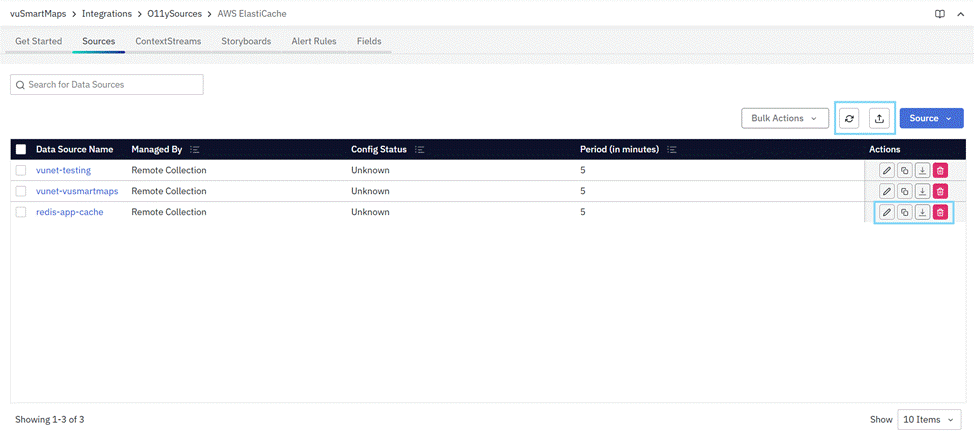 - For more details on action column functionality refer Importing O11ySources Source Instances