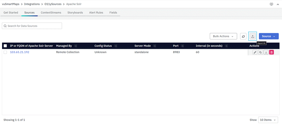 Each Source Instance listed in the Sources table includes a set of quick management actions under the Actions column. These options allow you to efficiently edit, duplicate, download, or delete configurations.