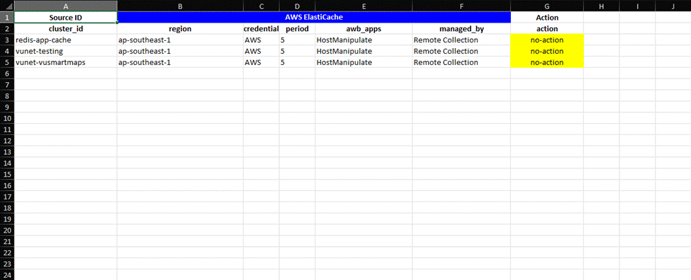 - The columns in the sheet depend on the selected O11ySource type. Field structure may vary accordingly.