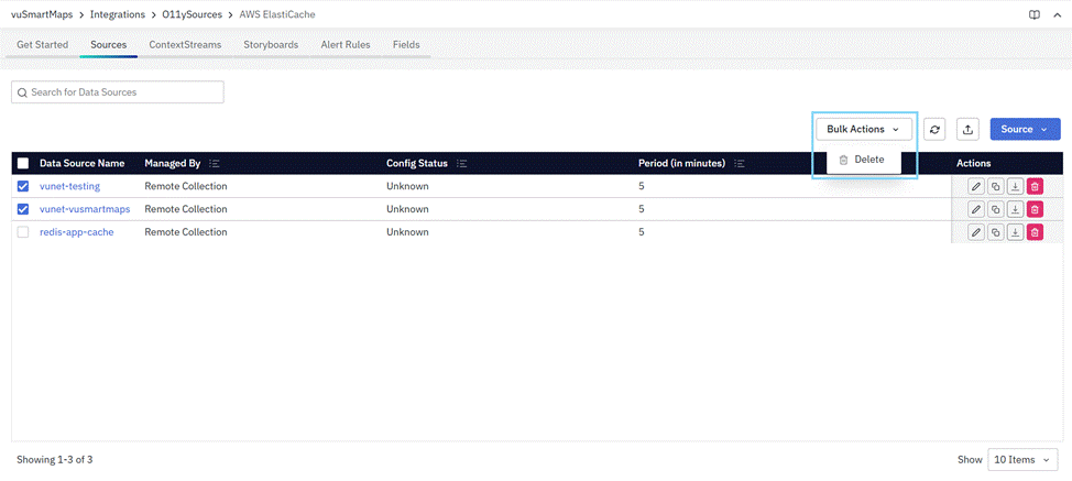 The Bulk Delete option allows you to remove multiple Source Instances simultaneously.