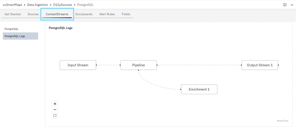 Upon accessing the ContextStreams Workflow, you will encounter a visually engaging representation of your O11ySource’s data journey. Here's what you can expect: