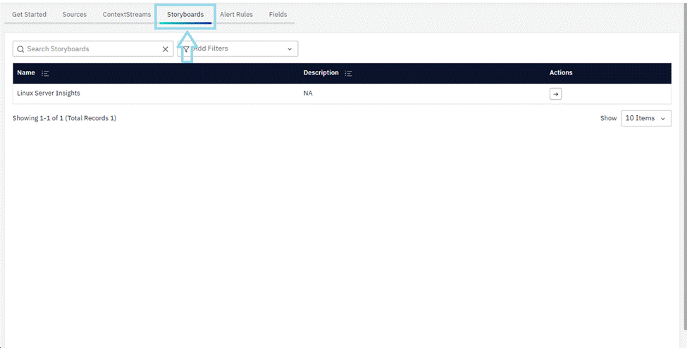 Within the Storyboards section, you'll find a compilation of various storyboards tailored for your O11ySource. Each O11ySource comes with its dedicated set of dashboards, meticulously designed to address specific monitoring and observability requirements.
