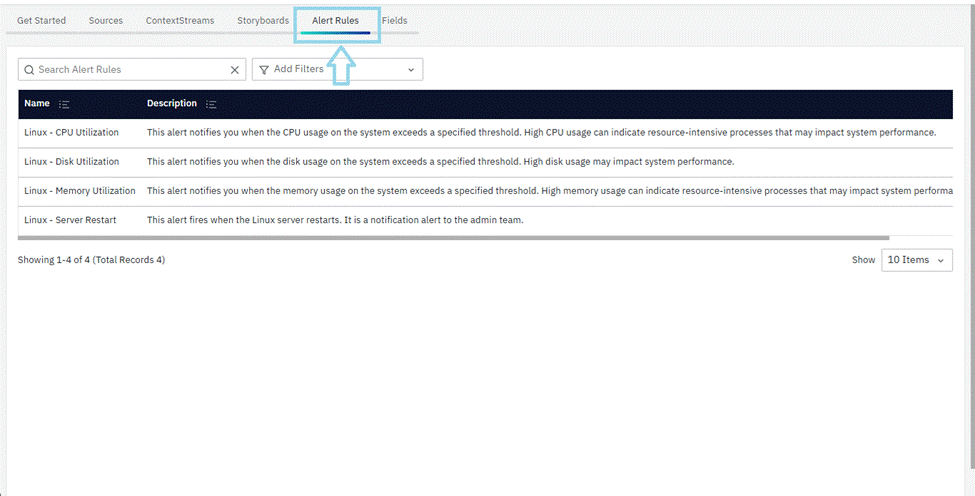 The Alert Rules feature empowers you to define, configure, and oversee your alerting requirements effectively. This structured approach ensures proactive issue resolution and promotes system stability and reliability. Aligning with the concept of storyboards, this section streamlines project management, enabling you to maintain control over real-time monitoring and issue resolution within your observability framework. For more information related to alerts, you can refer to the alerts user guide.