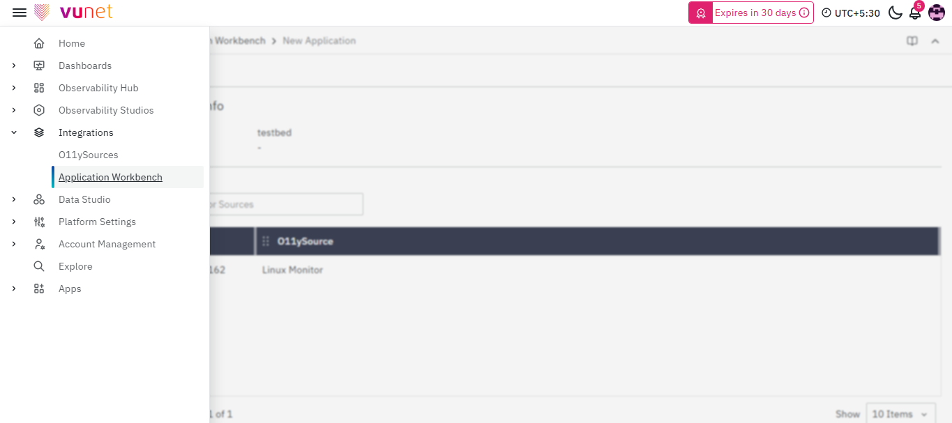 Application Workbench depends entirely on existing monitoring sources. If a source is not available here, it must first be configured in O11ySources.