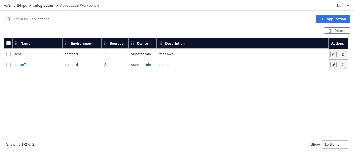 When you first open Application Workbench, you'll see all your defined applications in a clean table format.