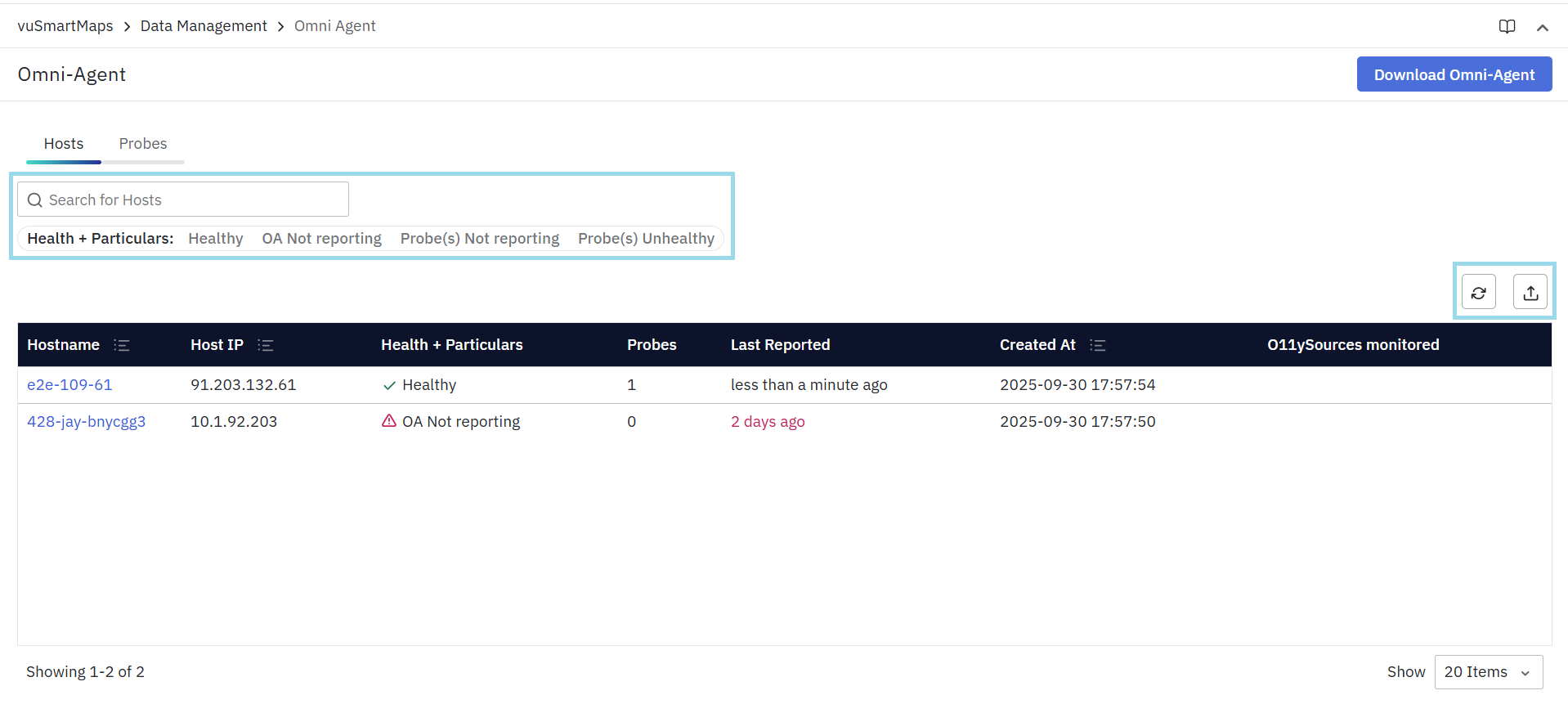 For details on navigating the console, refer to the OmniAgent Management Console → Hosts section.