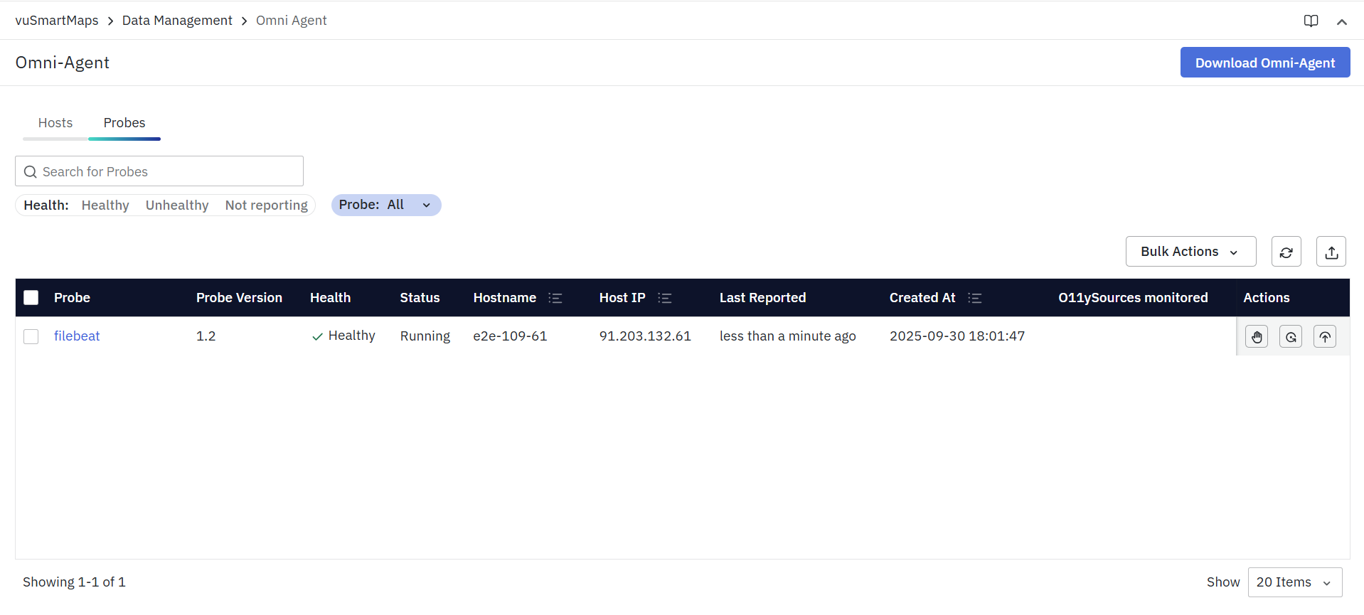 OmniAgent begins sending heartbeat messages to the vuSmartMaps platform at the configured interval.