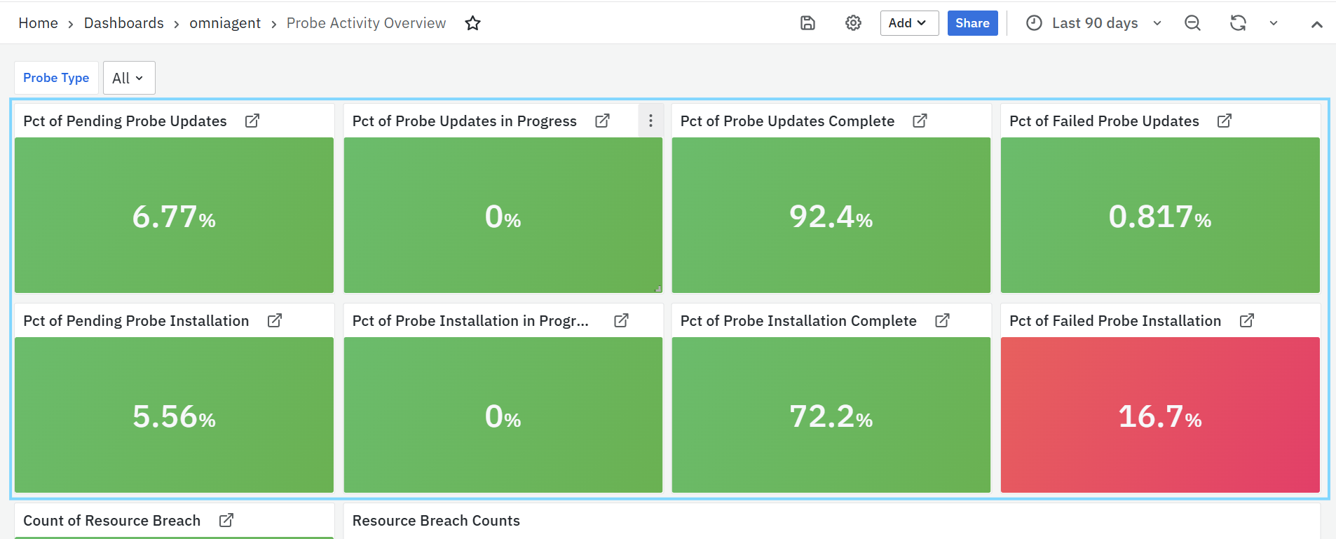 - Pct of Pending Probe Installation: Shows the percentage of probes that are pending installation.