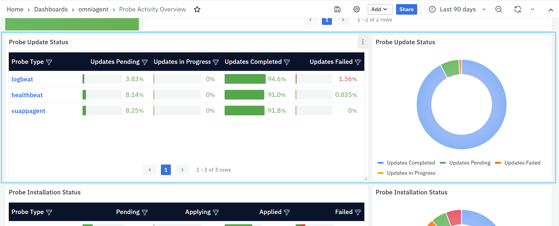 - Pct of Probe Updates Complete: Indicates the percentage of probes that have successfully completed the update process.