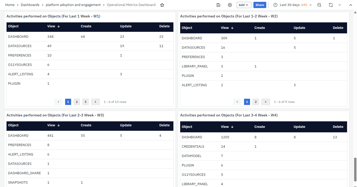 Analyzing these trends over consecutive weeks helps identify the most accessed dashboards platform-wide, supporting prioritization for maintenance, optimization, and user support.