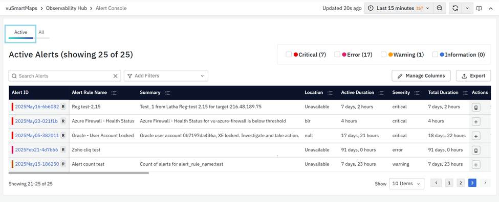 - Active Duration: How long the alert has been active.