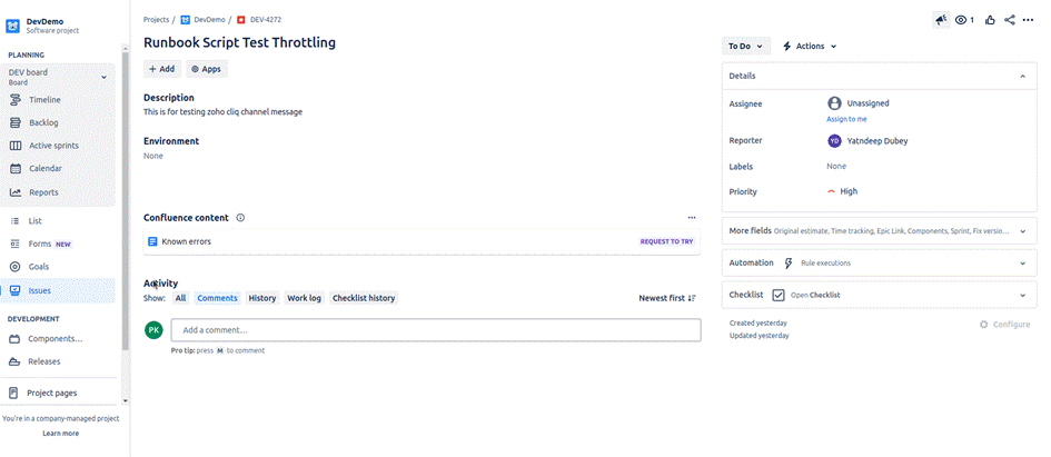 Select the Create New Ticket icon to initiate ticket creation in the Configured ITSM tool. A toast message will appear, indicating that the “Ticket creation is in progress...”.