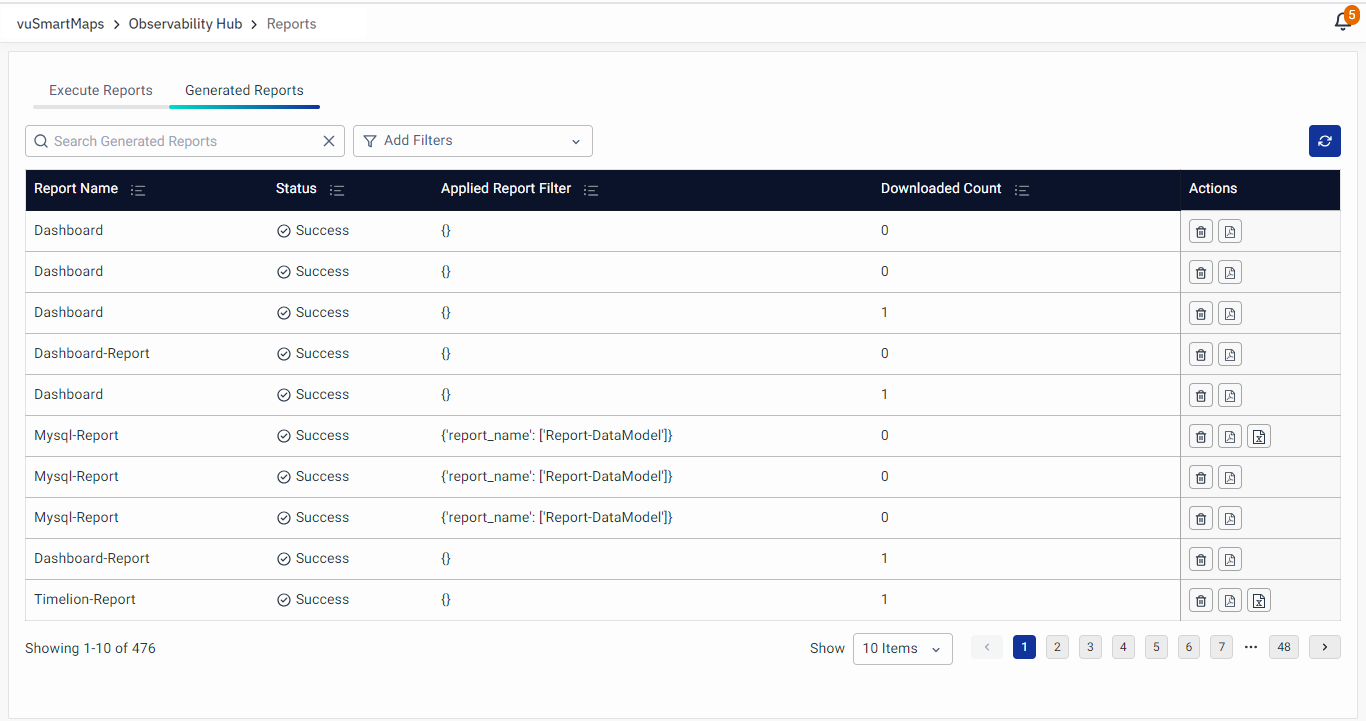 - To access the Generated/Scheduled report, navigate to Observability Hub > Reports
