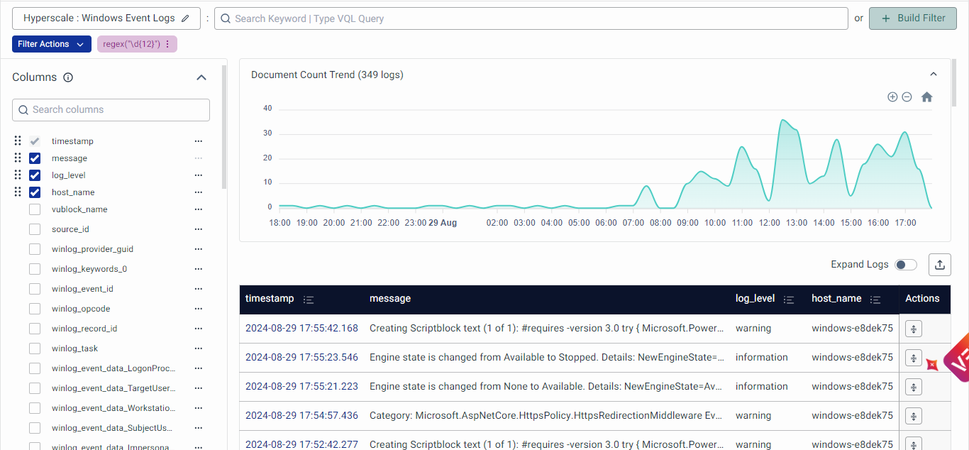 - Complex Pattern Matching: Filter logs based on varying formats, like different IP address structures, various date formats, or partial matches following a specific pattern.