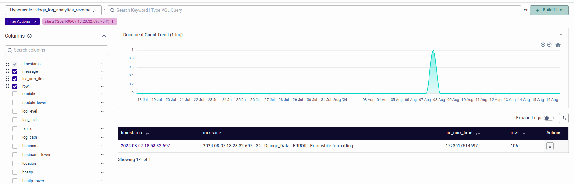 For example, to search for entries where timestamp starts with “2024-08-07,” use the following: