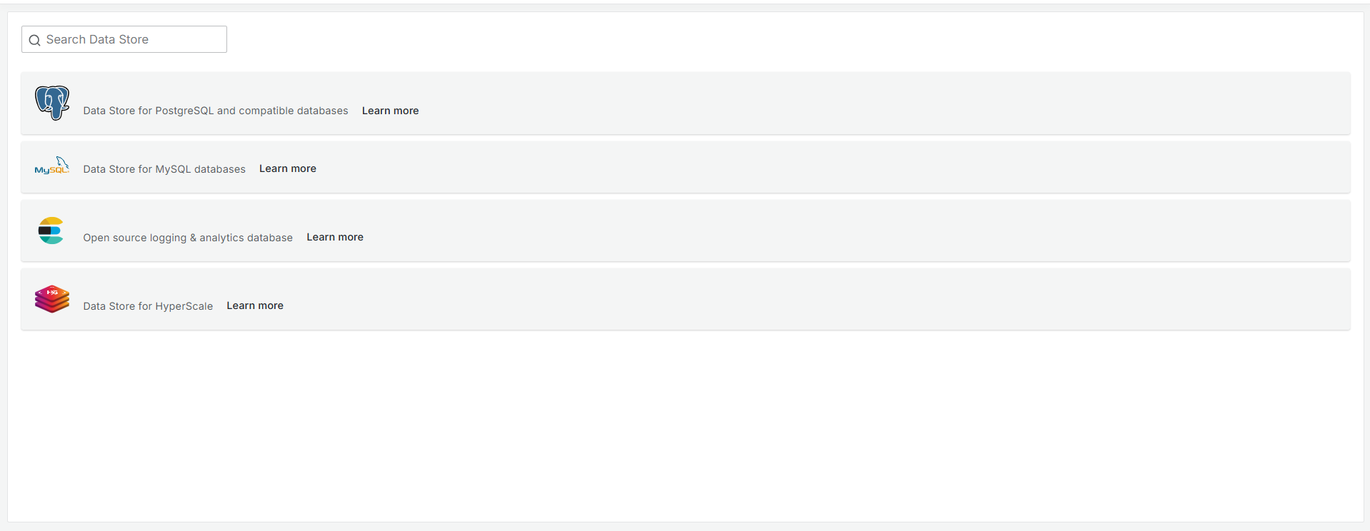You can see the list of supported Data Stores. You can search for any specific supported Data Store in the search bar. Click on the Data Store of your choice.