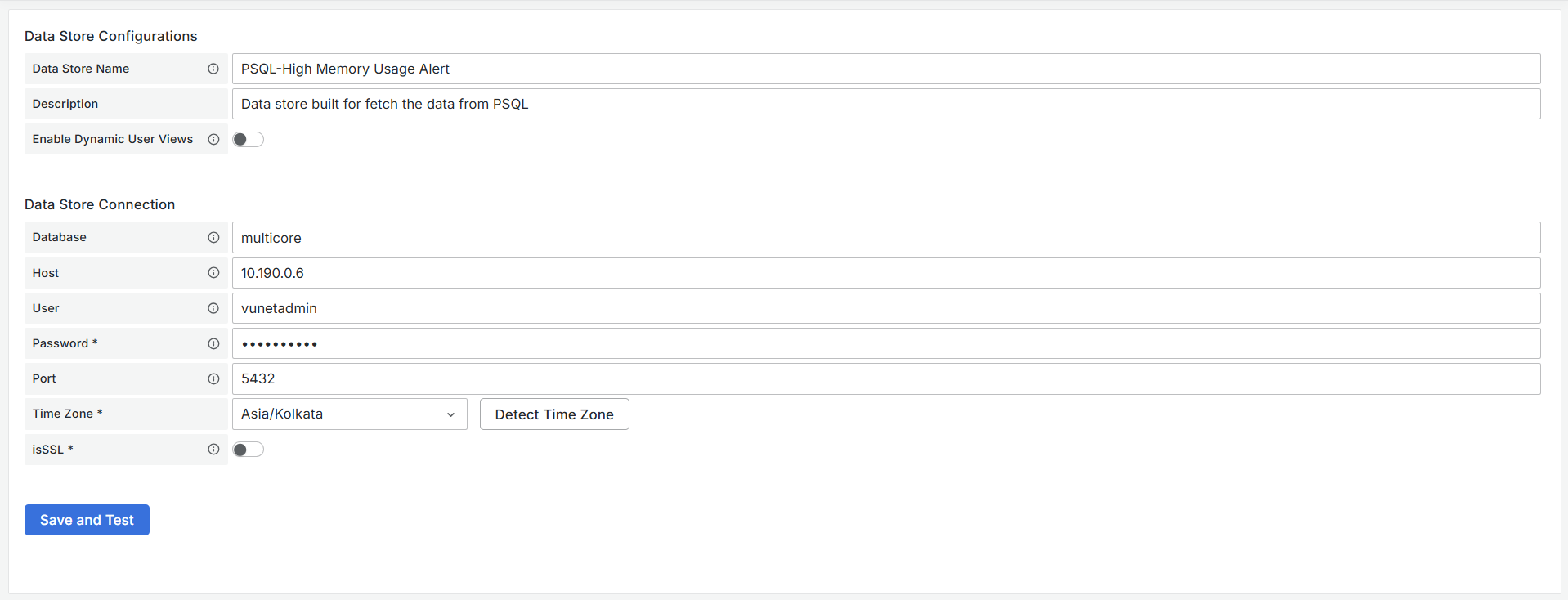 PSQL Data Store: All the fields are mandatory. The platform engineer or an admin should know the access details. _ Data Store Name: Enter the name of the Data Store.