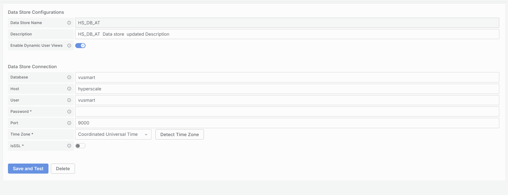 - Delete: Click to delete the Data Store (further details are in the next section).