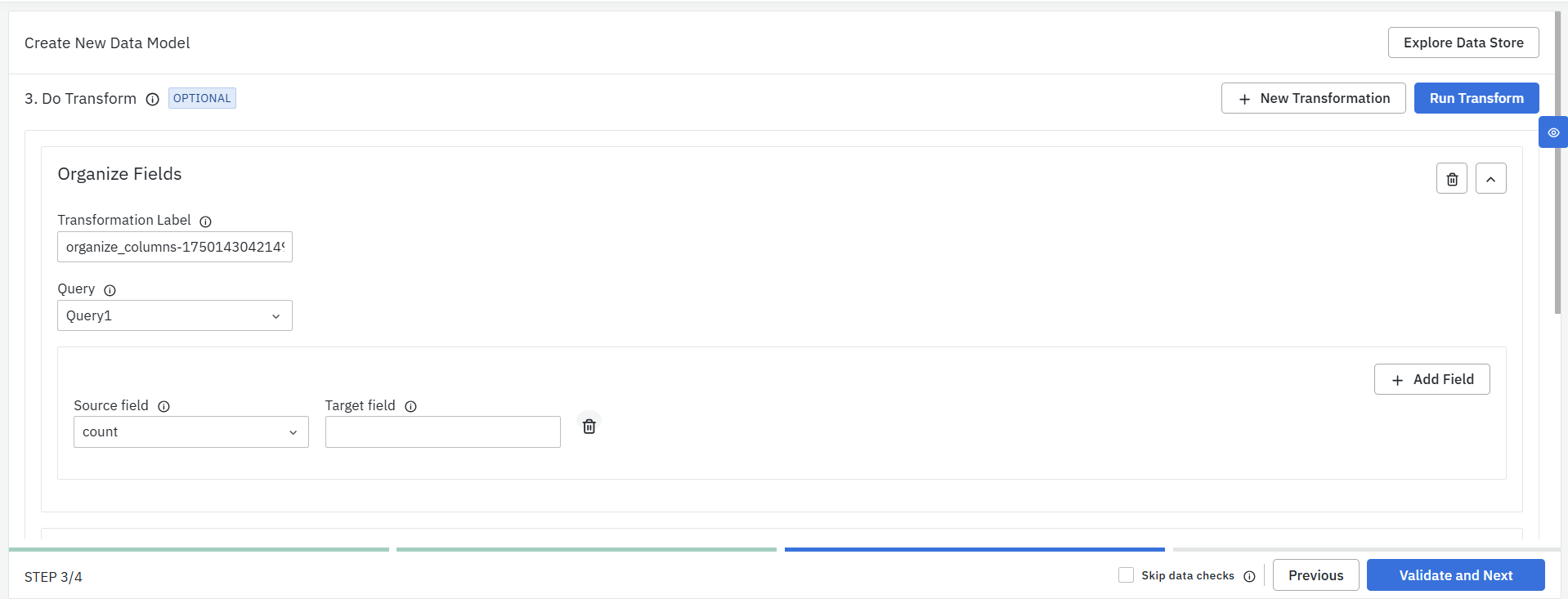 • If you need to organize fields for another query in the same data model, use the Add transformation option, select 'Organize field', and follow the same steps.