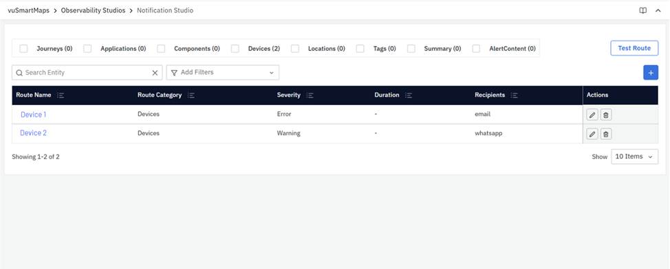 Notification Studio provides a centralized way to configure how alert notifications are delivered across different channels (e.g., email, Slack, MS Teams). Instead of configuring each alert rule individually, you can define notification routing policies that apply broadly based on categories like journeys, devices, or alert severity. This helps reduce repetitive setup, ensures consistent notification delivery, and simplifies large-scale alerting workflows.