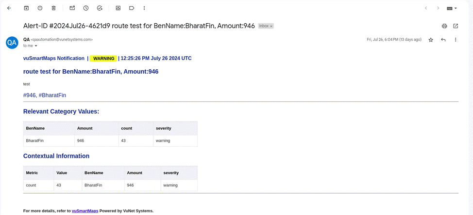 Once a matching alert is generated and use_notification_routing: true is enabled in the alert rule, the alert will follow the logic of the matching notification route for delivery.