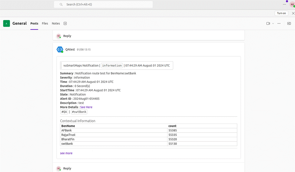 This simulates a test alert based on your configuration to verify if notifications are delivered as expected. It's ideal for validating setup before enabling routes in production.