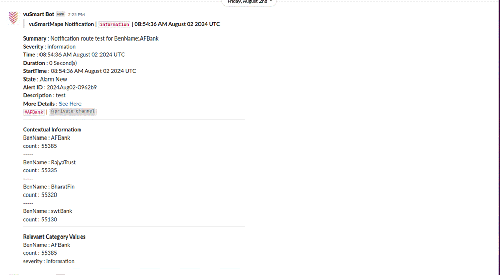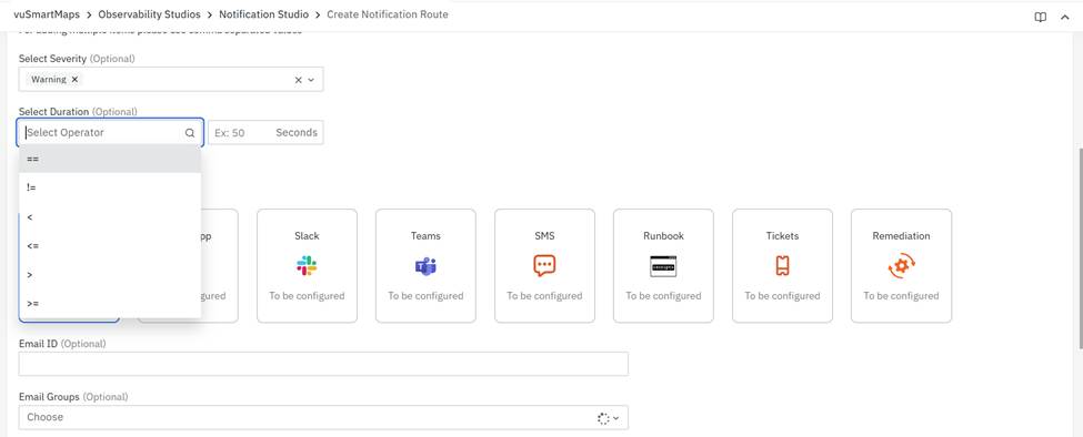 Step 6: This is an optional step. You can set up alerts to be sent based on specific conditions like alert duration. Now, any UPI alert that lasts longer than 150 seconds will automatically be sent to the channels you selected.