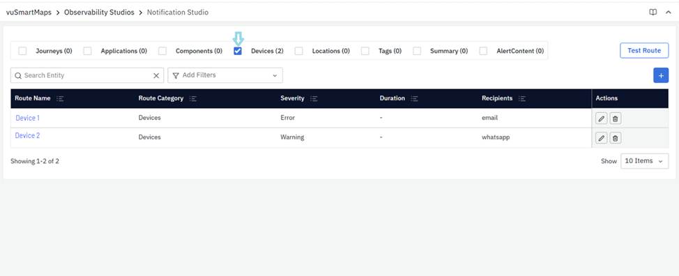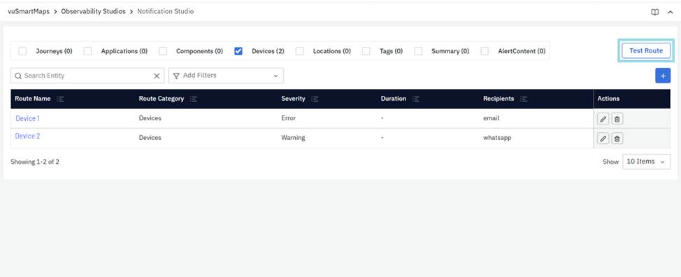 - Test Route: Click on this to test if the notification route functions as defined.