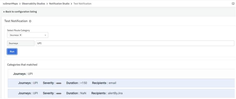 Step 3: Enter the Notification Route that you have created or you would like to test. And then click Run. It will show all the routes that match your criteria. It will work only in the live environment if it works here.