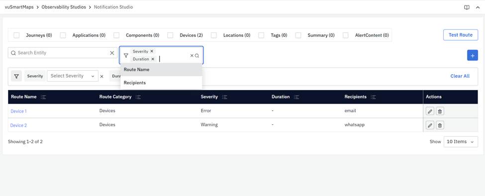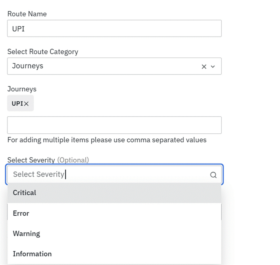 Additionally, you can click on the Add Filters section and choose one or more criteria from the dropdown such as ‘Route Name’ or ‘Severity’ etc.