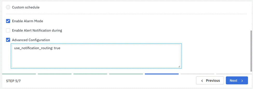 For a Notification Route to take effect, make sure to include the condition use_notification_routing: true in the Advanced Configuration section of the Step 5 Alert Controls - Advanced Configuration while configuring the Alert Rules.